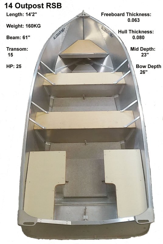 The 2026 Alumarine 14 Outpost RSB is  a rugged, lightweight, and durable aluminum fishing boat designed for stability, efficiency, and superior performance in varied water conditions . It is known for offering a dry, safe, and responsive ride, featuring a cost-effective design that requires less power and reduces fuel consumption.