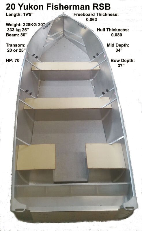 The 2026 Alumarine 20' Yukon Fisherman RSB (Rear Seat/Bench) is a rugged, 20-foot-3-inch aluminum utility boat manufactured in Prince Albert, SK, designed for durability and, to some users,, stability in harsh conditions . It features a wide 80-inch beam, 20-25 inch transom height, multiple bench seats, and 7 keels for enhanced durability and tracking.