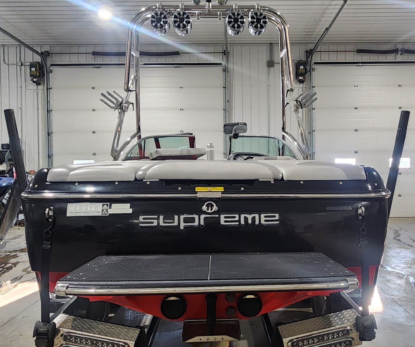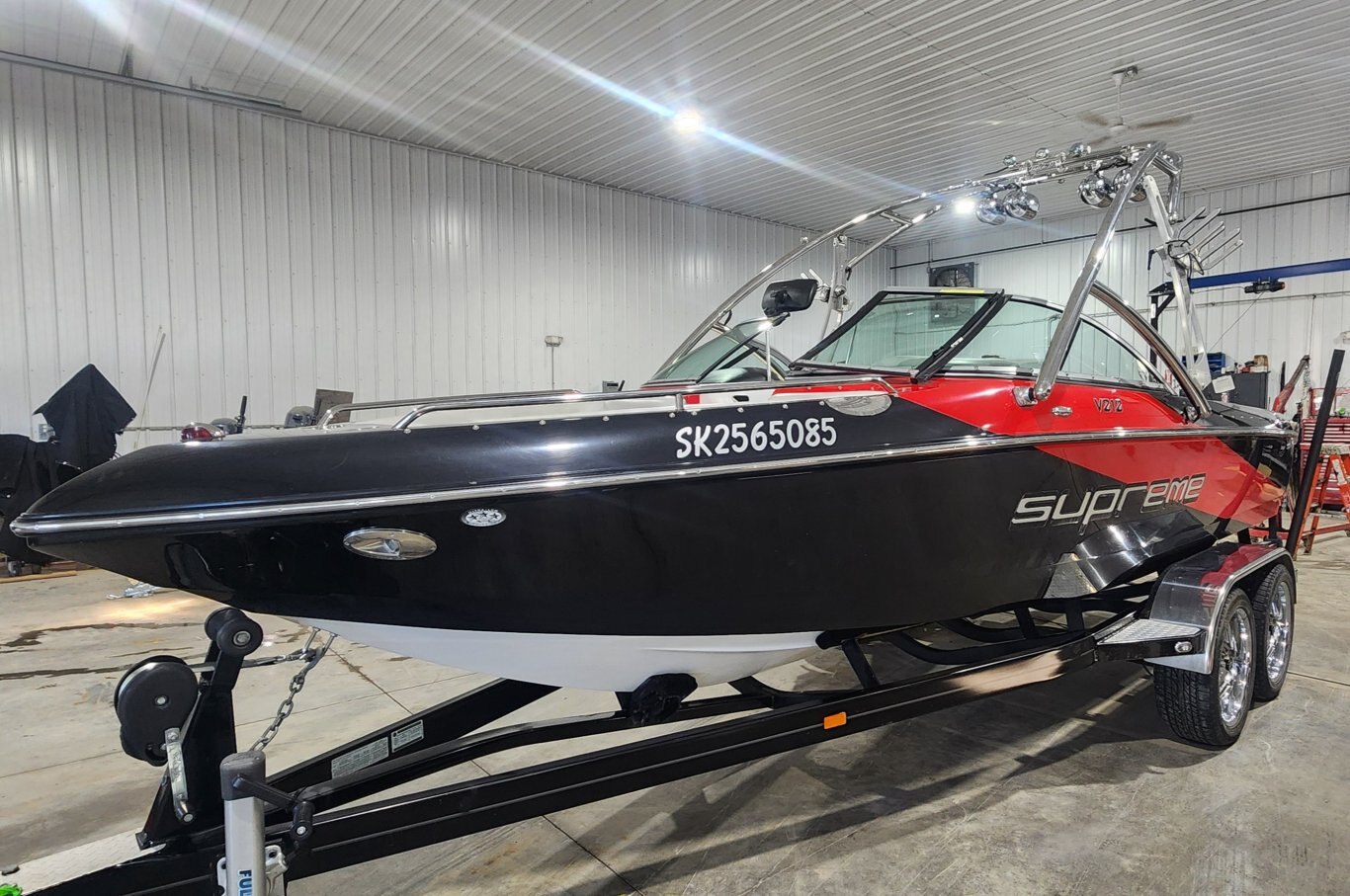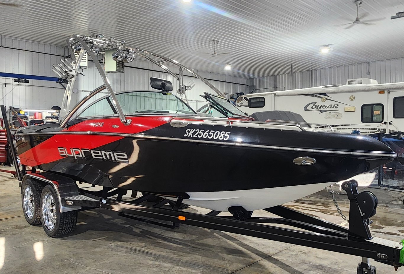 The 2009 Supreme V212 was a 21-foot fiberglass wakeboard boat , known for its spacious interior (comparable to larger boats), smooth ride in choppy water (deep-to-semi V hull), and solid wake for watersports, featuring a V8 engine (often 330 HP) for good acceleration and speed, praised for driver visibility and maneuverability.