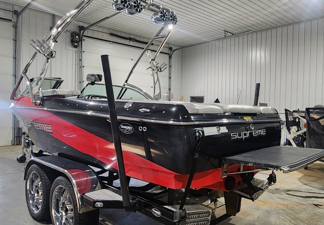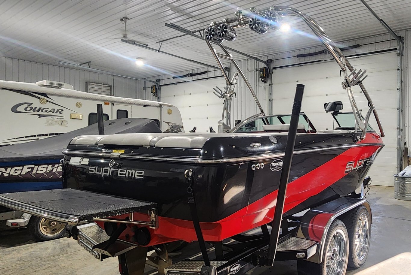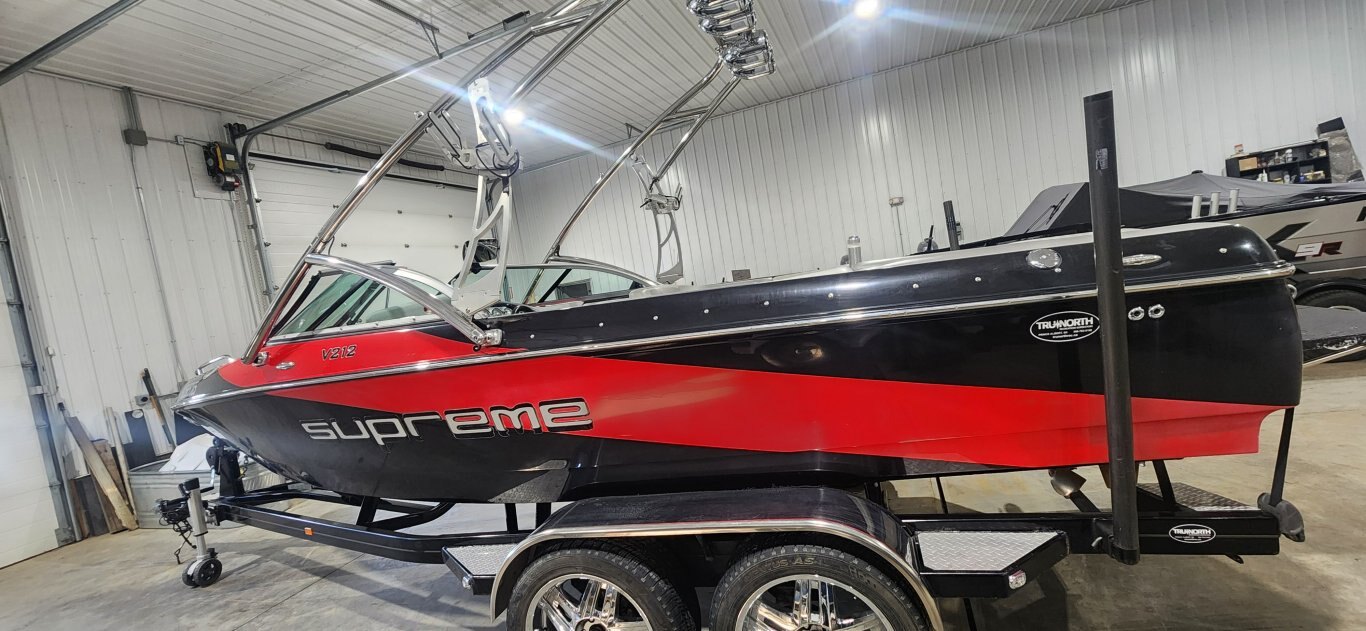 The 2009 Supreme V212 was a 21-foot fiberglass wakeboard boat , known for its spacious interior (comparable to larger boats), smooth ride in choppy water (deep-to-semi V hull), and solid wake for watersports, featuring a V8 engine (often 330 HP) for good acceleration and speed, praised for driver visibility and maneuverability.