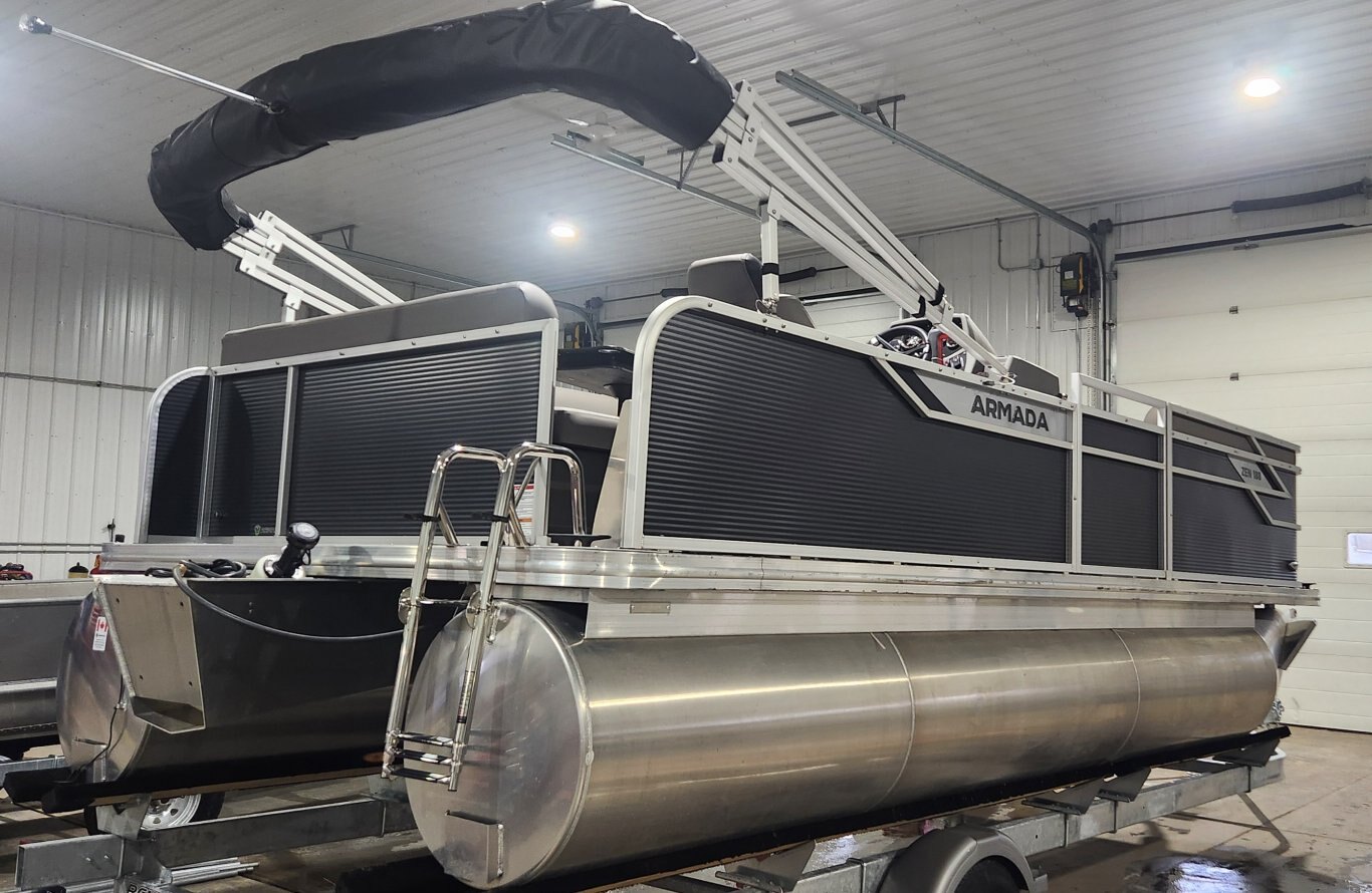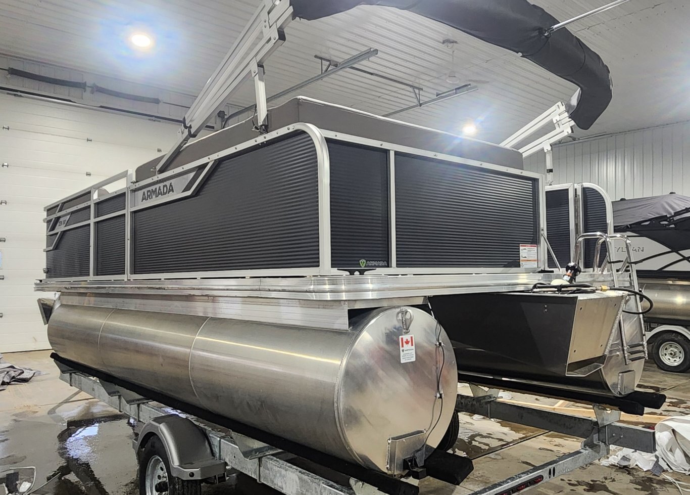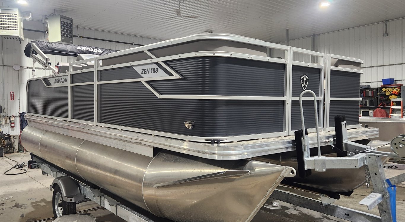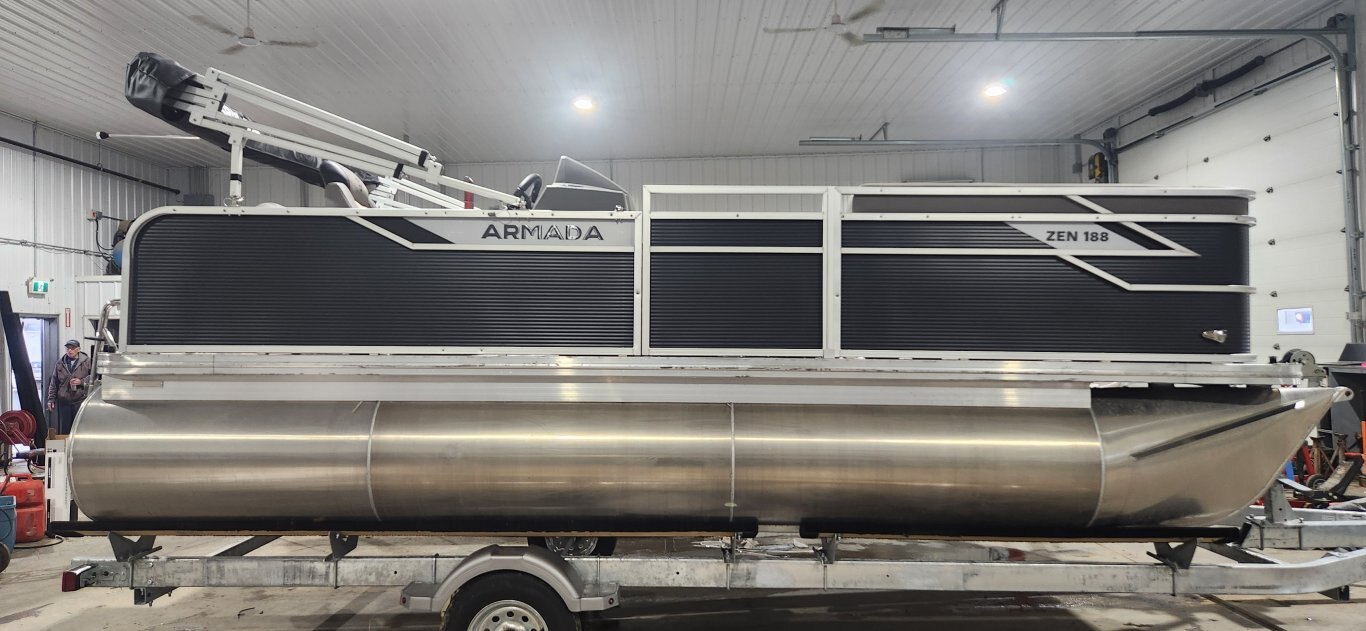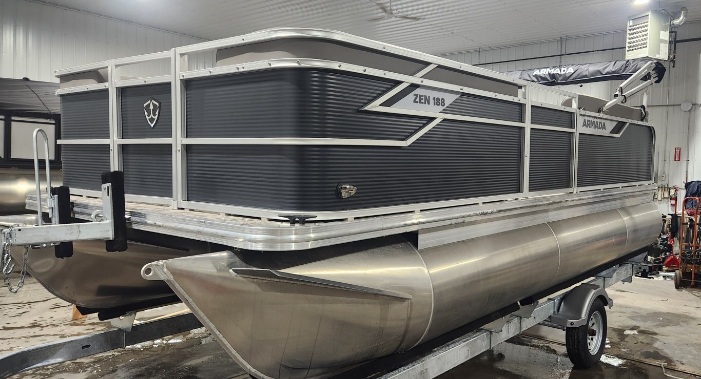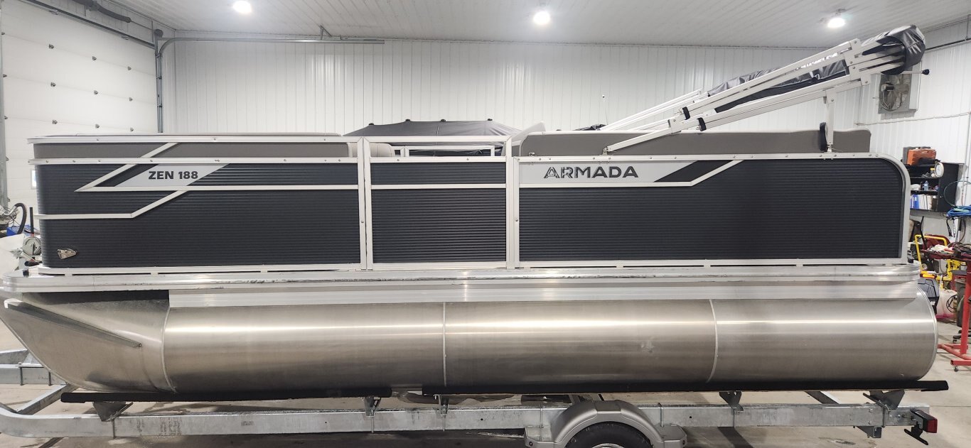 The 2026  Armada  Zen 18' (specifically the 188 model) is  a Canadian-built,,, economical pontoon designed for family cruising and fishing . It features 25-inch diameter tubes, a durable bolted/welded aluminum chassis, and non-slip marine vinyl flooring. Often paired with 90-horsepower four-stroke engines, it offers a comfortable, user-friendly, and stylish on-water experience.