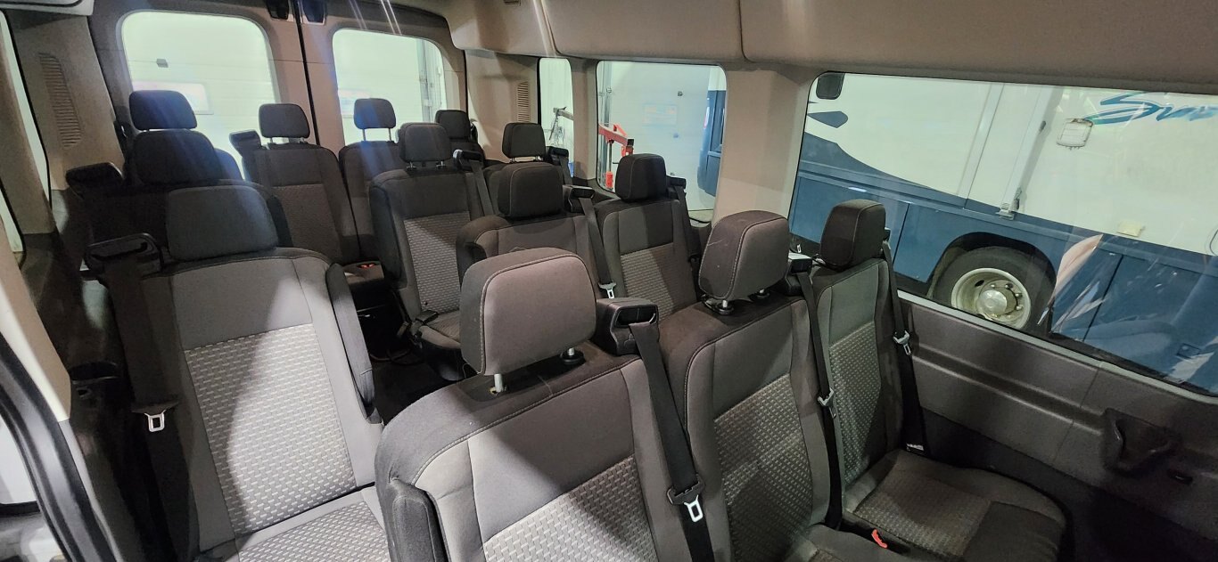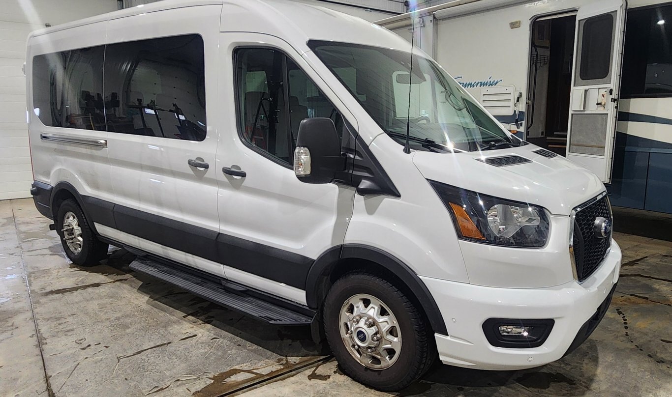 The 2023 Ford Transit Passenger Wagon XLT is a versatile, people-focused van offering multiple configurations (roof heights, wheelbases) with seating for up to 15, powered by capable PFDi V6 or optional EcoBoost engines , and featuring upgrades over the base XL, like a larger center console, more driver-assist tech (like standard Cross-Traffic Alert/Trailer Coverage), and available heated seats, designed for comfort, utility, and family/commercial transport .