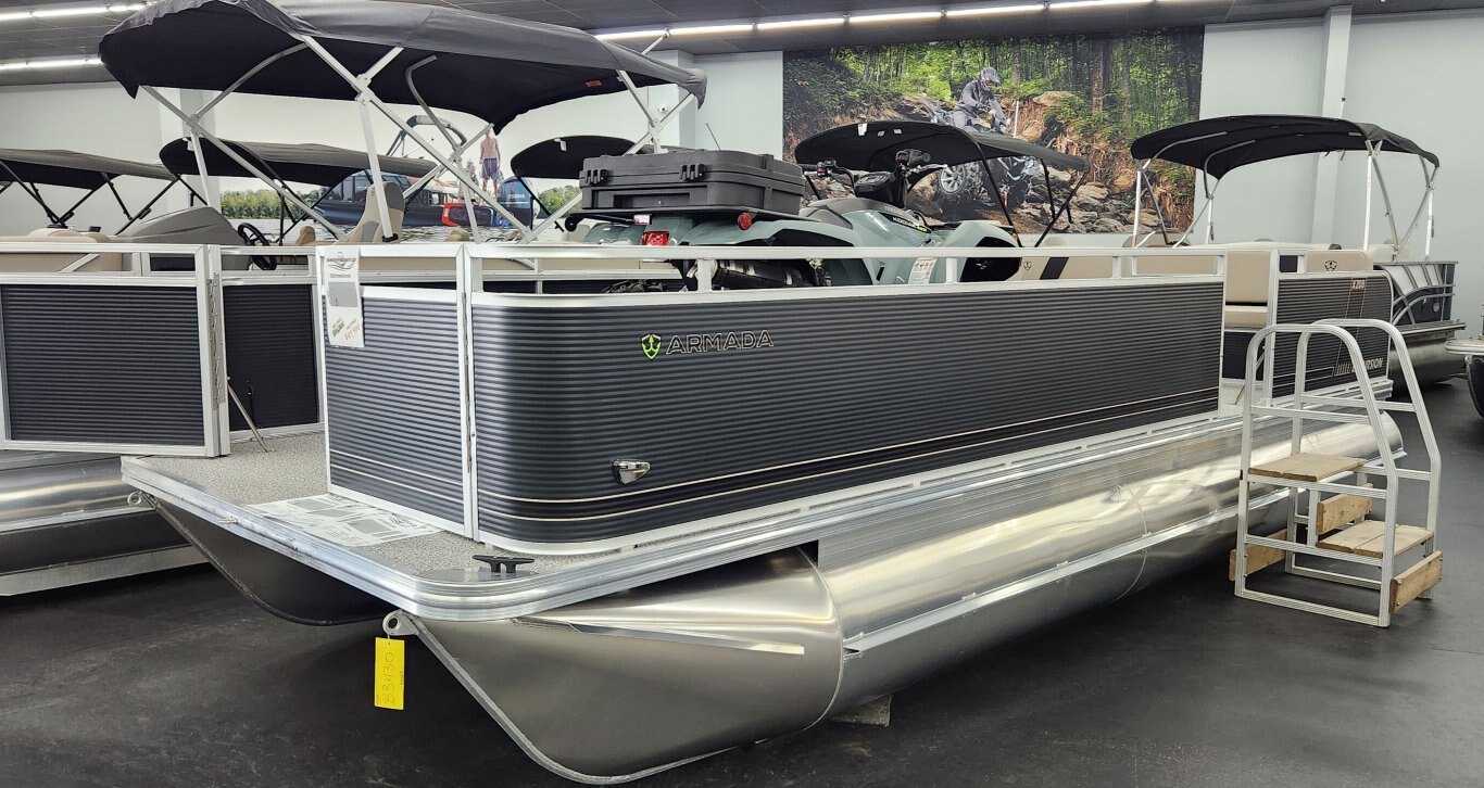 The Excursion is our transport pontoon that will assist you with your toughest jobs. It offers a large loading capacity and plenty of space. Just picture it with your ATV and building supplies!