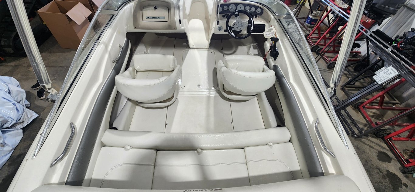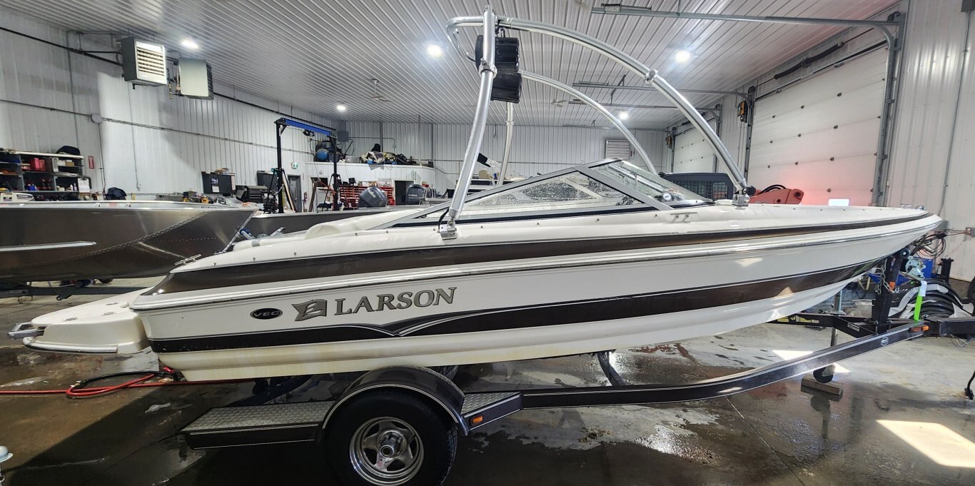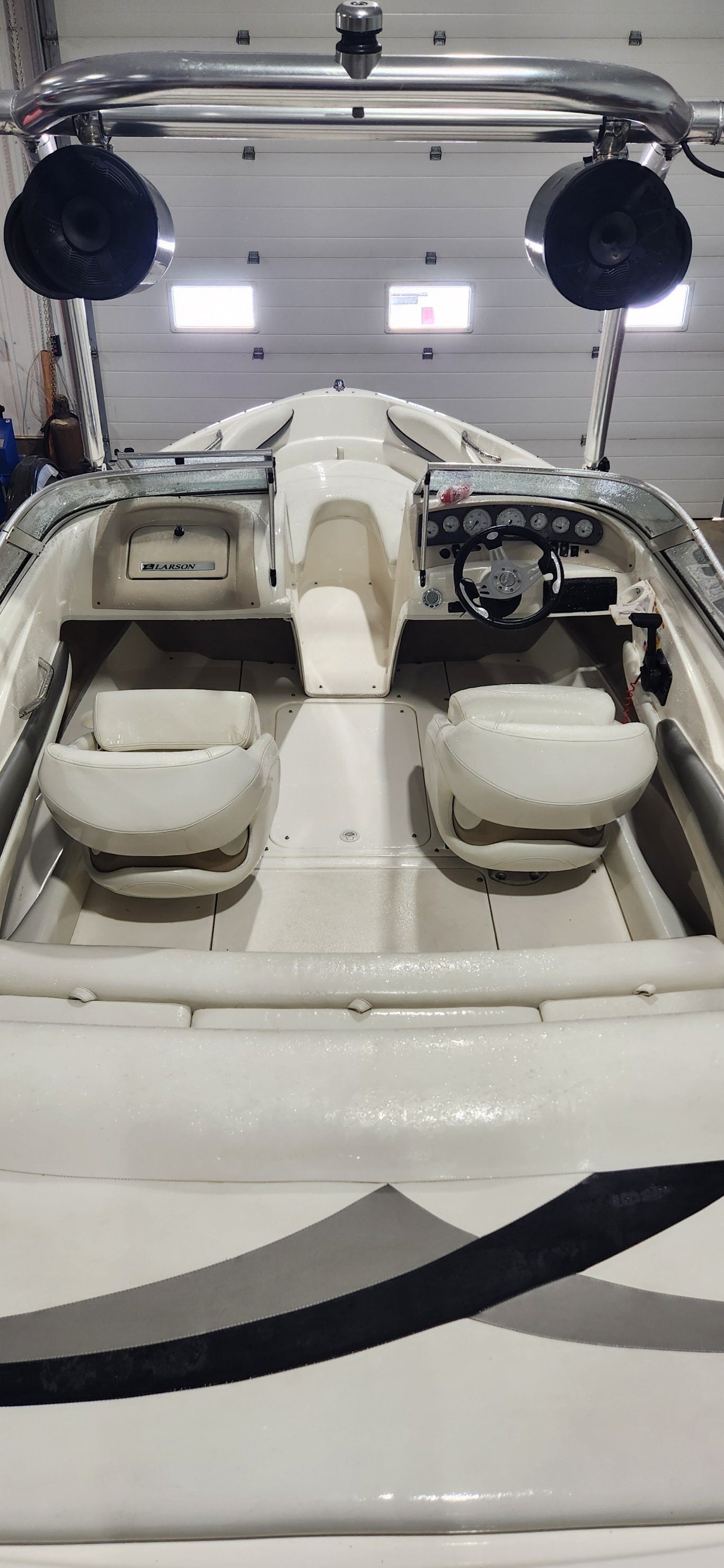 The 2008 Larson SEi 180 Sport/LX is an 18.5-foot bowrider designed for watersports and cruising, powered 4.3L Volvo Penta engine. It has an 8-person capacity, features fiberglass flooring, and often comes with a custom-matched trailer.