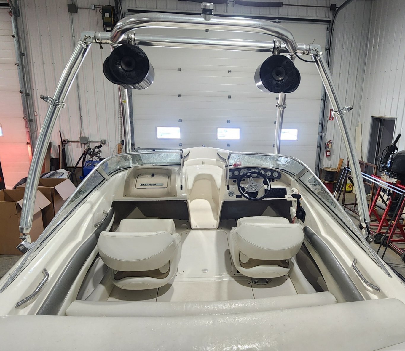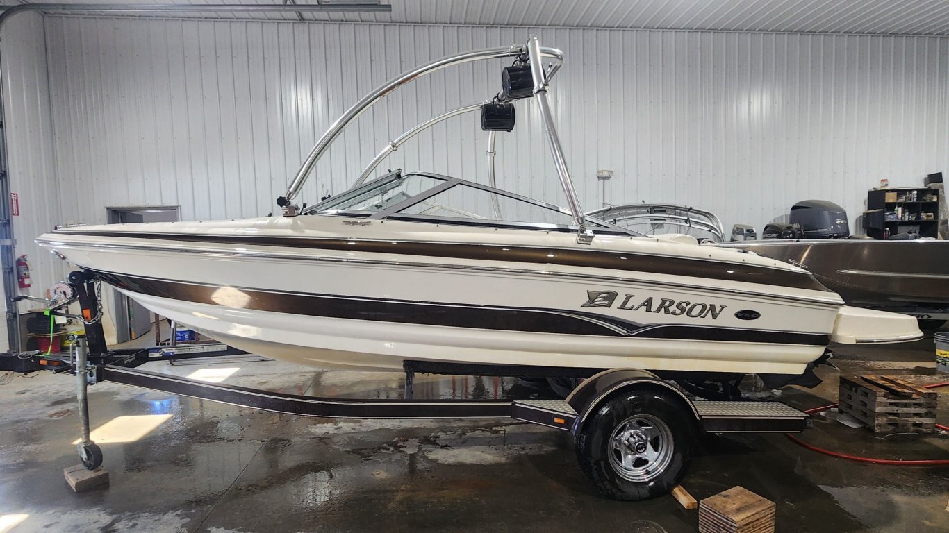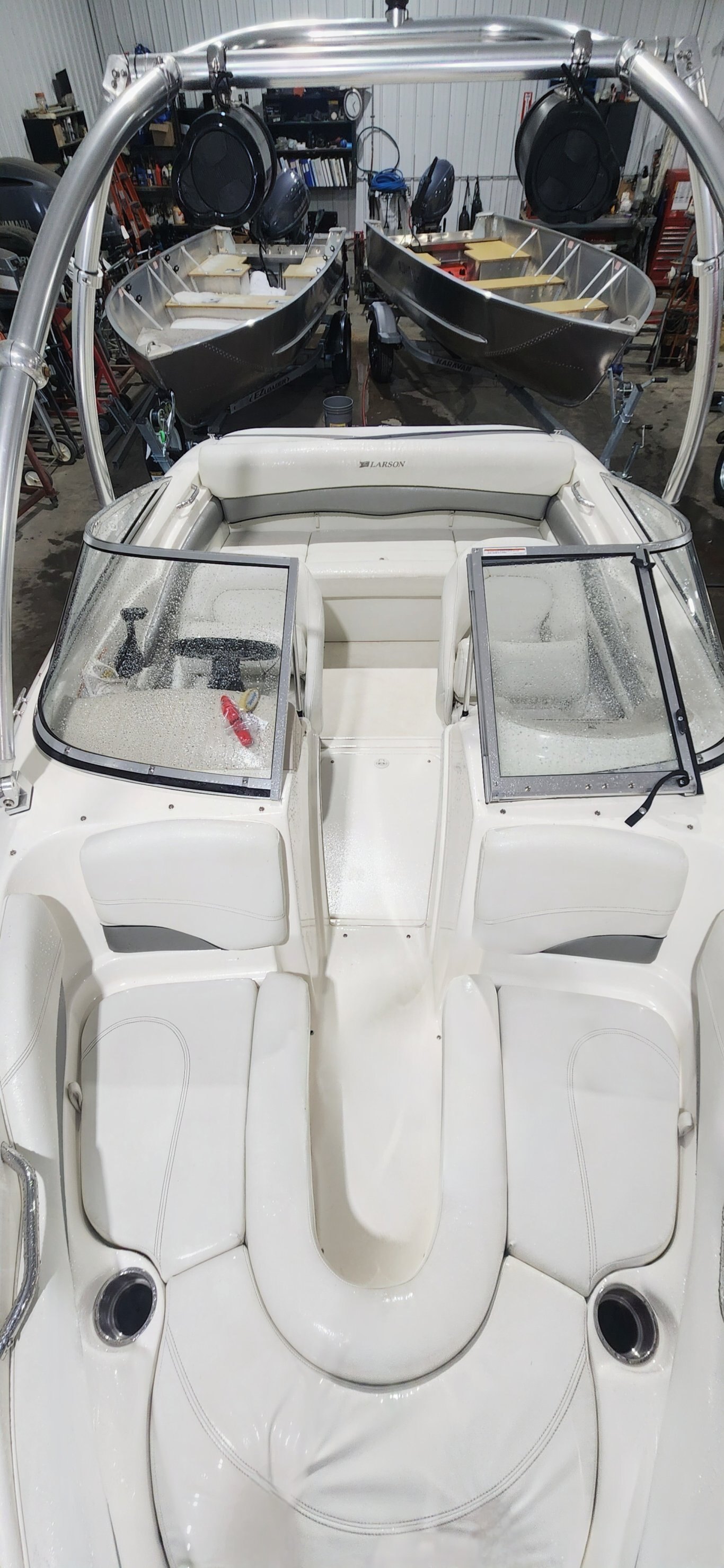 The 2008 Larson SEi 180 Sport/LX is an 18.5-foot bowrider designed for watersports and cruising, powered 4.3L Volvo Penta engine. It has an 8-person capacity, features fiberglass flooring, and often comes with a custom-matched trailer.